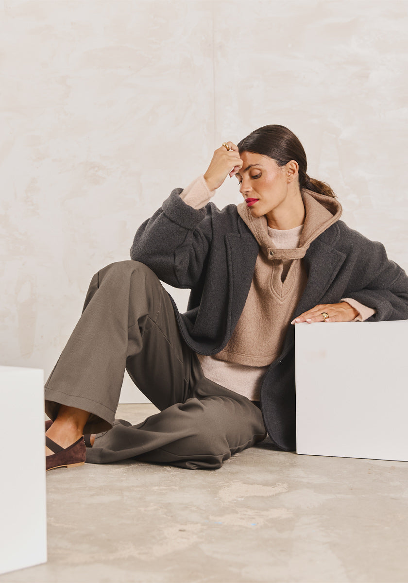 À associer avec le pullBANCA miel et le pantalon MESTRE taupe pour un layering subtil et affirmé.