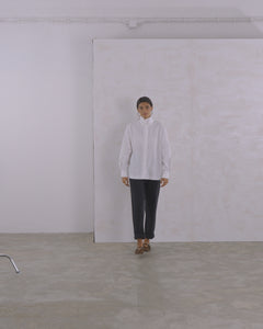 En popeline de coton, elle joue avec les volumes grâce à ses manches bouffantes et son tombé droit.