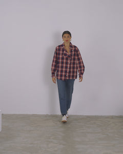 VARA Red Tartan, la chemise qui apporte caractère et allure. Chic et féminine, dans un tissu tartan coup de coeur franças 100 % coton, on aime son asymétrie subtile et son double col. Les poignets retournés avec boutons nacre ajoutent une touche raffinée.