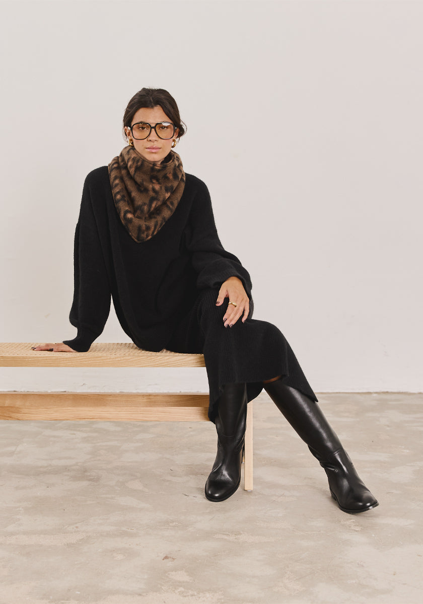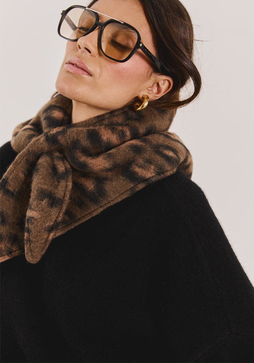 Confectionné dans un tissu effet fausse fourrure ultra doux, ce triangle apporte chaleur et style à vos tenues. A porter devant façon bandana ou inversé façon châle.