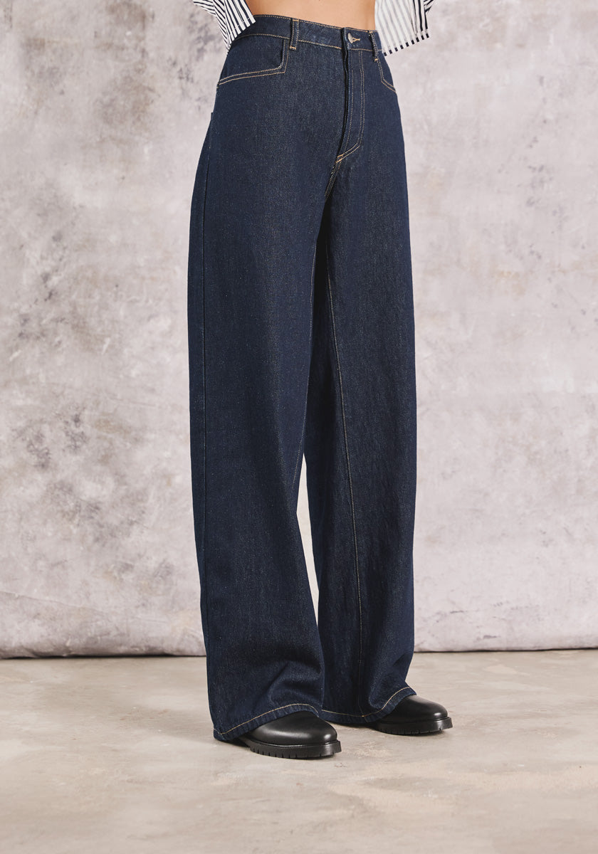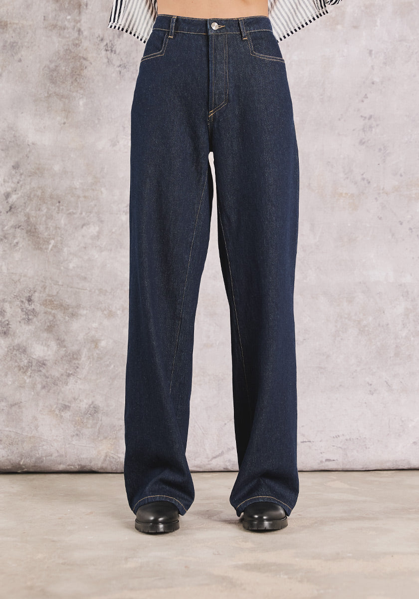 BISPO, le jean brut à la coupe longue, fluide et style affirmé.