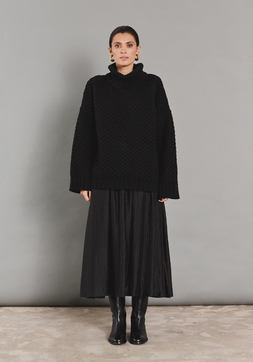 Pour une silhouette délicate et contrastée, associez-la à notrepull JACINTO black waffle.