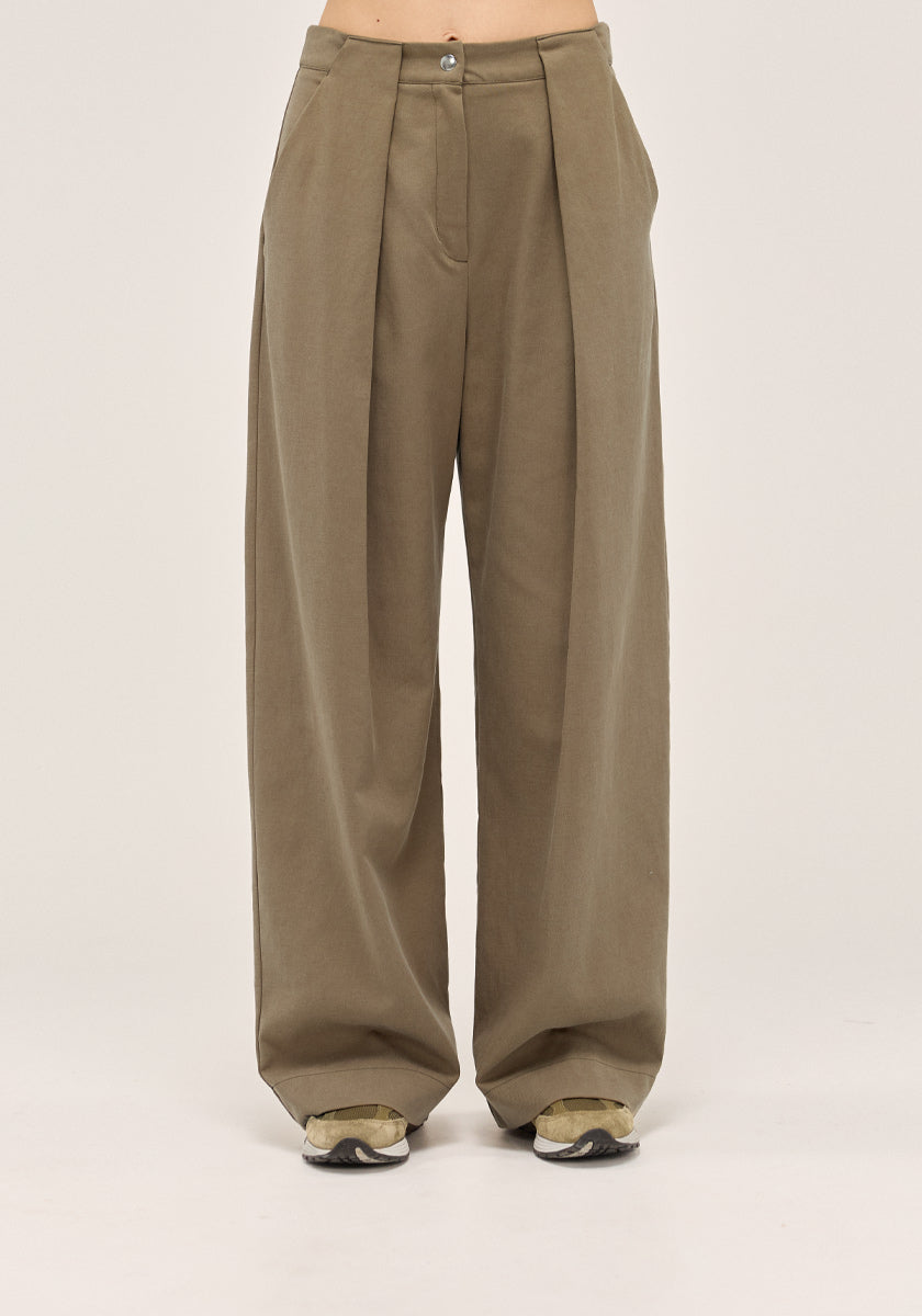 Sa fourche basse et sa coupe loose offrent un confort absolu et une allure décontractée moderne. La grosse pince qui prolonge le passant en une ligne continue apporte une touche architecturale raffinée. Le nouvel intemporel qui structure vos tenues avec évidence.