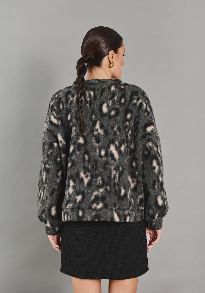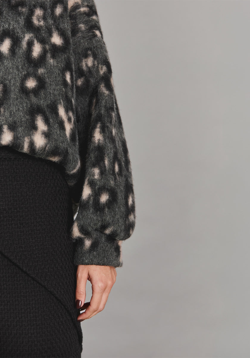 Le pullDIAS léopard grey apporte le petit twist de la saison. Confectionné dans un tissu effet fausse fourrure ultra doux, il combine confort et allure. Sa coupe ample et ses manches resserrées aux poignets offrent structure et féminité, tandis que le motif léopard grey dynamise vos tenues hivernales.