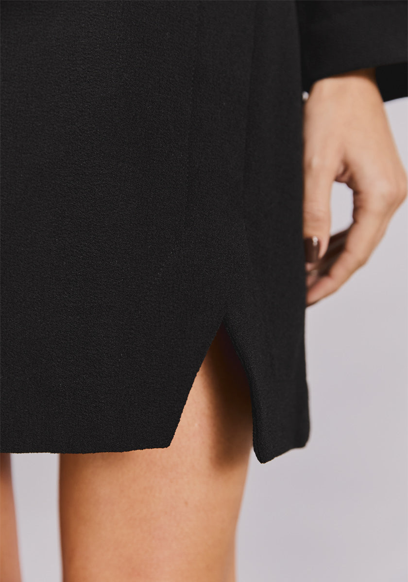AMARES black est la robe qui conjugue caractère et élégance avec une fluidité moderne.Confectionnée dans un joli tissu noir, elle épouse la silhouette avec confort tout en offrant un tombé structuré et raffiné.Sa matière douce et légèrement texturée garantit un porté agréable tout au long de la journée ou de vos soirées.