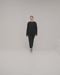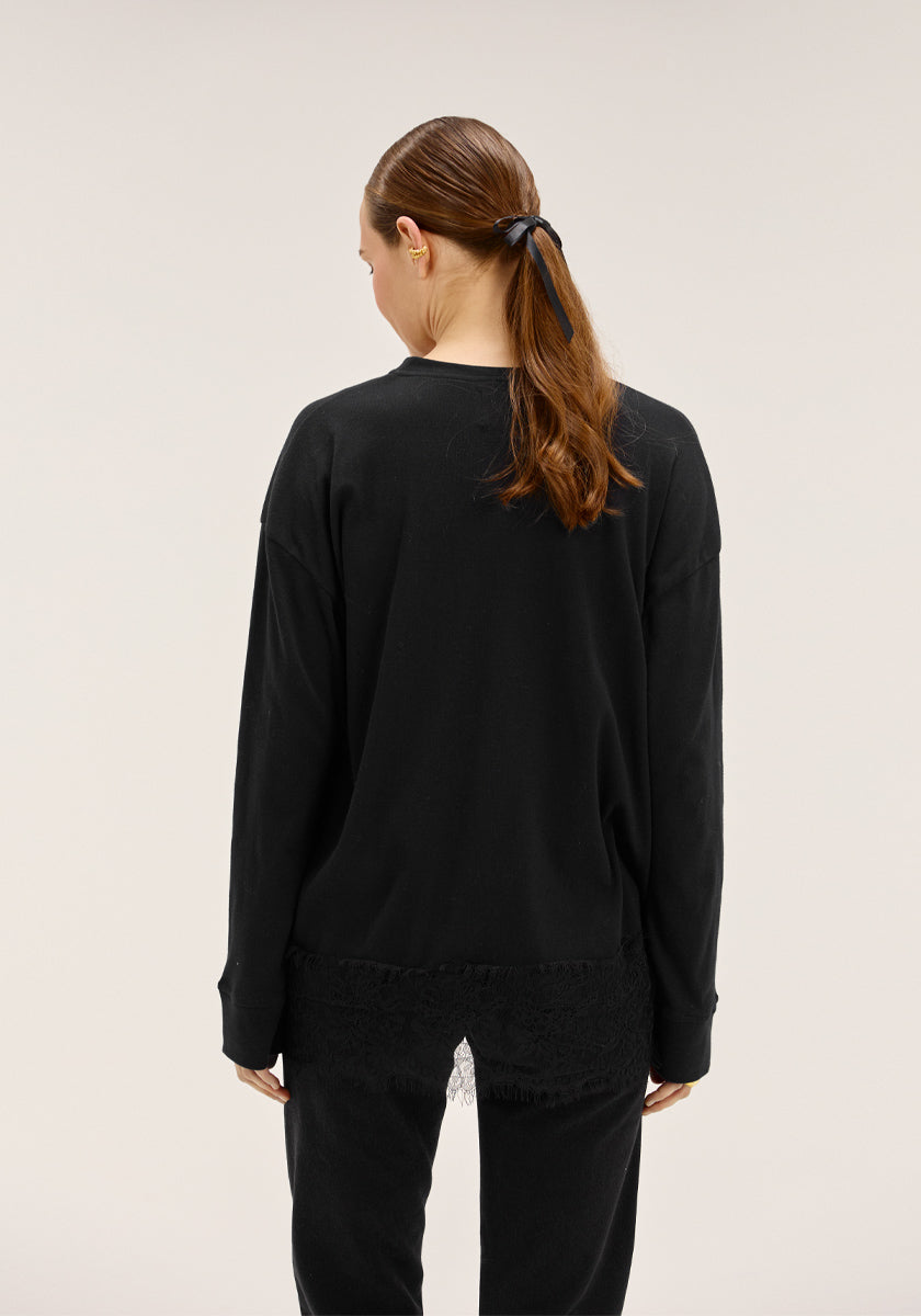 LOPORO black revisite notre basique LOPO avec une touche de sophistication. Sa coupe courbée – plus courte devant, plus longue sur les côtés – apporte fluidité et mouvement à la silhouette. Confectionné en 100% coton épais avec un détail en dentellesur le bas, il conjugue confort et féminité avec justesse. La base polyvalente qui élève vos tenues du quotidien.